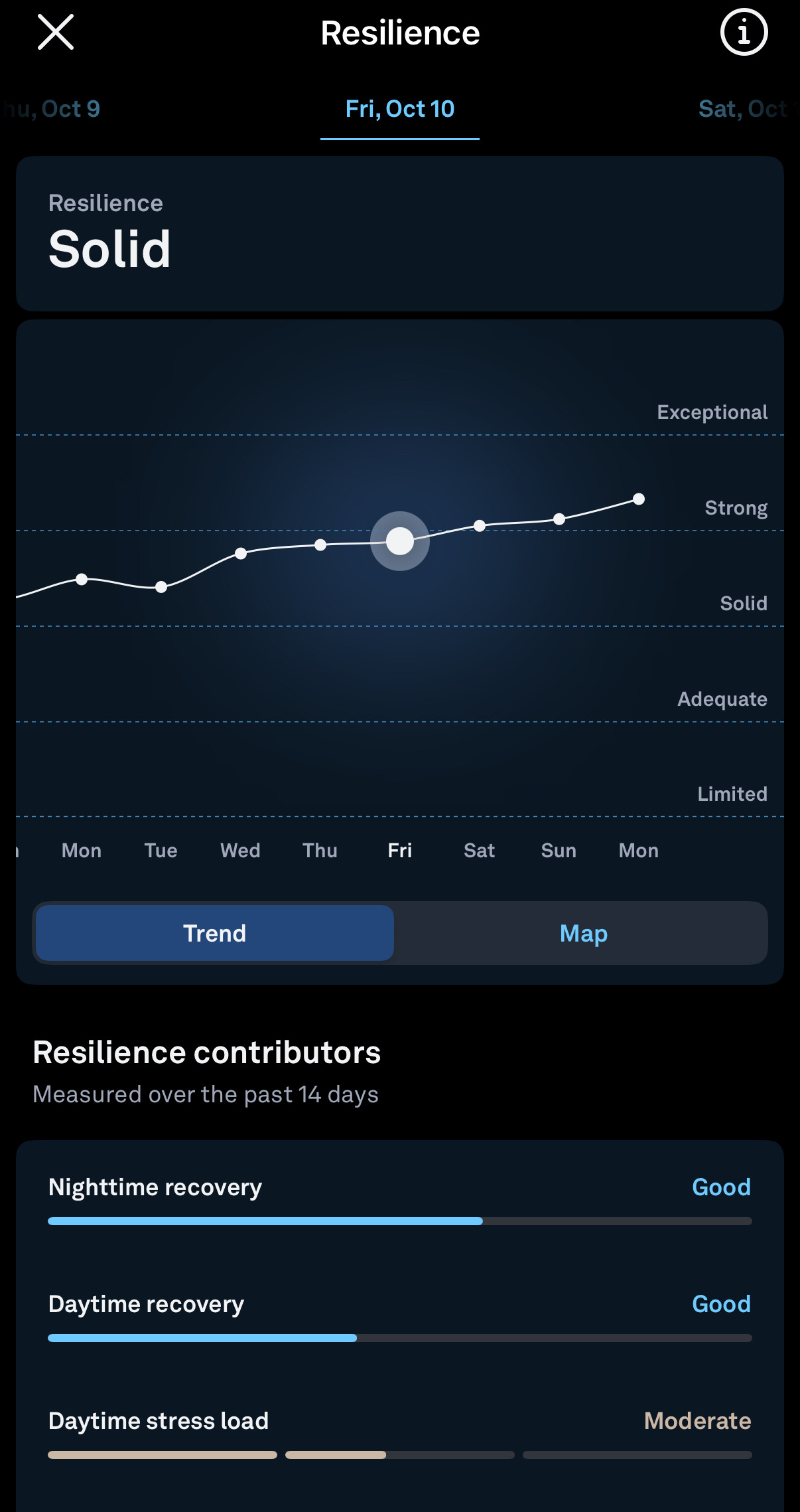 As of today, I’m trending back toward “exceptional” resilience from solid just a week and a half ago. Paradoxically, being on vacation for two weeks actually dropped my resilience to stress.